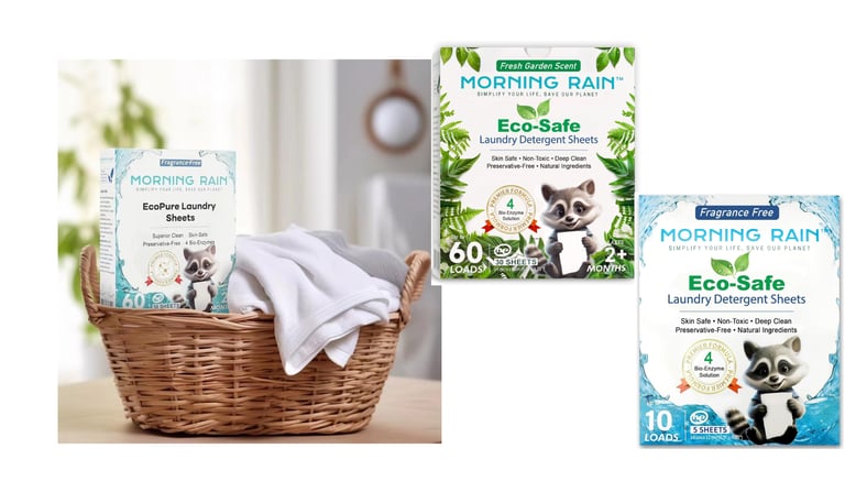Zero Preservative Formula: Morning Rain cleaning products are completely free of preservatives. We use expensive natural tea tree oil instead of traditional preservatives to extend the shelf life of our laundry sheets.